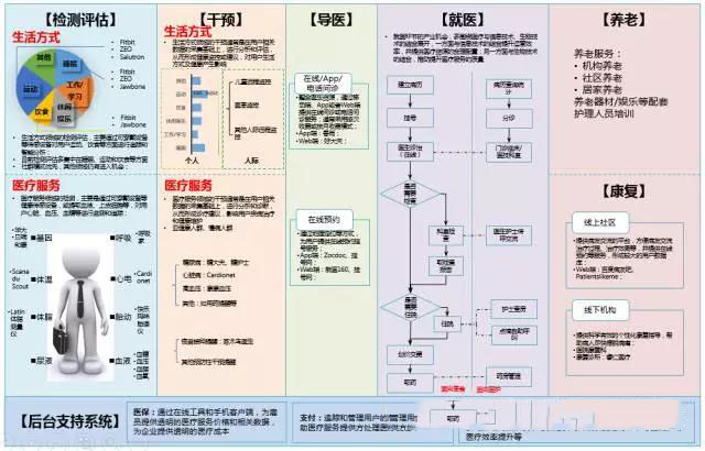 對于這一命題,通過兩個層面來闡述。第一個層面是需求端的全景式掃描,勾勒出醫療健康管理場景,從場景中尋找機遇。第二個層面,研究現有的領先模式,從領先模式中吸取營養。本文主要研究第一個層面,下一篇文章(系列之三)將主要講解第二個層面。