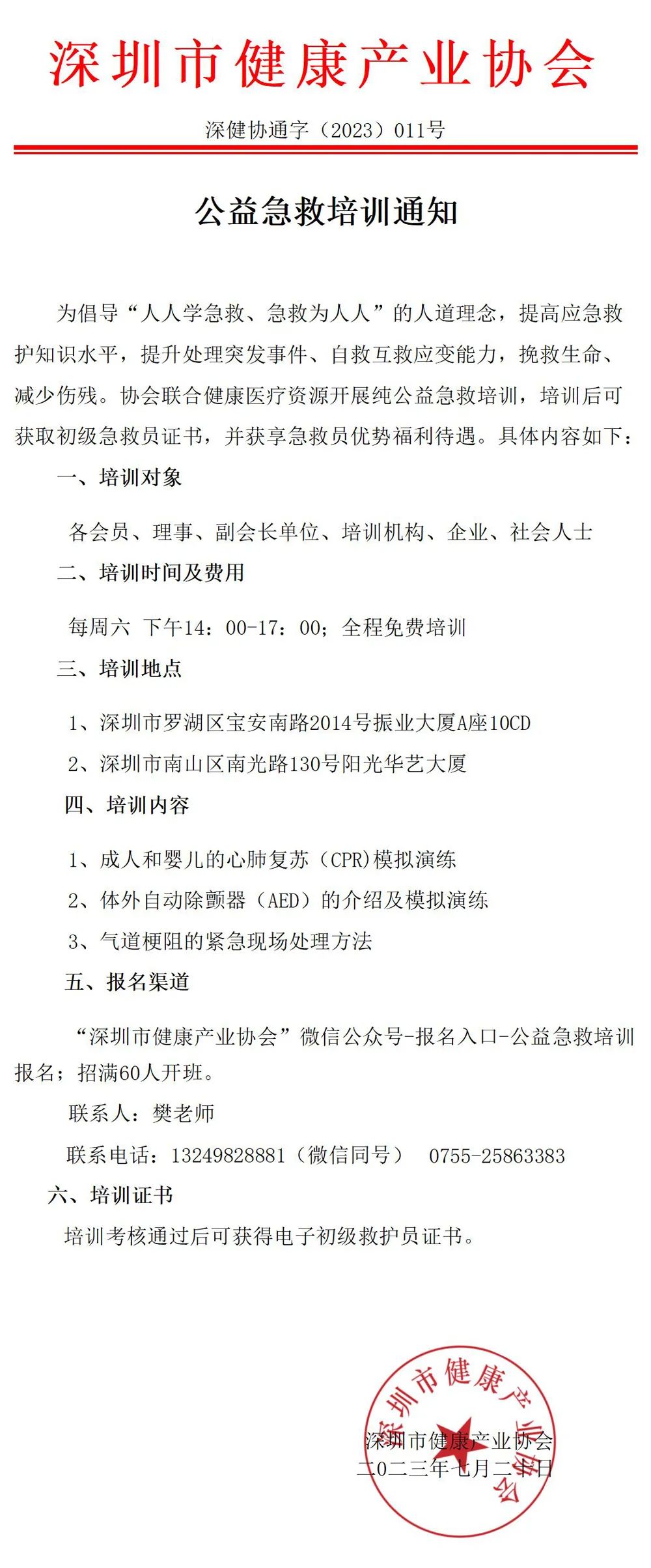 公益急救【培訓通知】