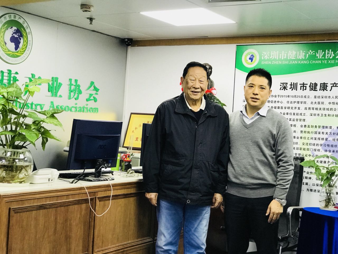 深圳政協原副主席周長瑚蒞臨深圳市健康產業協會指導工作并與深圳市健康產業協會黃爾程會長合影留念